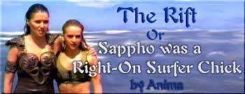 CHAPTER SEVEN I Get Around, Round, Round, I Get Around "Are you sure it’s safe out there? Those waves are the size of Titans." Gabrielle sat on the shoreline and dug her toes into the sand. Sappho sat next to her. Behind them, on either side of them, hundreds of women. "Oh, Gabrielle, this is what the wave riders wait for! Nothing could keep them out of the water now. Today’s a perfect day for the big competition." "Actually, I’m concerned about Xena. She’s a warrior, not a wave rider. But if anyone can take care of themselves, and learn to do something brilliantly, it’s Xena." Gabrielle smiled just thinking about her big warrior. "I’m sure she’ll be fine. And all the other wave riders are out there. Atthis will keep an eye on her." Sappho patted Gabrielle’s arm; their first physical contact since the enchantment had been lifted—and rather unceremoniously, at that. Aphrodite appeared on the beach with Cupid and everything went hazy for a moment then back to normal. The only residual effect was a pounding headache that the bard was just getting over. The awkwardness of Sappho’s touch didn’t go unnoticed by either of them. The sun had reddened the bard’s cheek, but remembering her actions had her blushing a brighter shade. "I can’t tell you how embarrassed I am by—" "Gabrielle, we’ve already discussed this. There’s no need for you to apologize again and again, especially when you have nothing to apologize for. Consider the matter closed and fodder for a good story." Sappho paused in thought. "A change of names to protect the innocent might not be a bad idea." The poet grinned, letting the bard know, in fact, she considered herself and the story to be fair game. "It will be a good story," Gabrielle thought, out loud. "Thanks for being so great about everything. You could have had us thrown off of the island." "And miss the big wave riding competition?" "I’ve been thinking...doesn’t surfing sound better?" The poet considered it. The bard continued her line of thought. "I mean riding the waves sounds exciting, but surf...surfing, it sounds sort of romantic. Still exciting, but it also has an emotional appeal. I’ve noticed most of the wave riders, surfers, feel a strong emotional pull towards the sport." "You make a good case, and the word has a more aesthetic appeal. I’ll speak to Atthis about it. Since she is the inventor, it’ll be up to her." "So, why aren’t you competing?" "Oh, I’m not that good. Only the best participate. I’m just a lowly poet." "Hmm," Gabrielle smiled. She watched the wave riders, er—surfers, as they paddled their way out to sea. Not everyone would catch the same wave at the same time, so it wasn’t difficult to watch all the women surf. The bard was duly impressed. They made those boards do some amazing things. They did some sort of maneuver that allowed them to go up and cut back. Some even walked around on the boards. It was all very impressive to the bard. "These women come from all over for this event. And since this is where wave riding, or surfing," a smile for Gabrielle, "originated, this is a very important competition. Afterwards, we have a big party on the beach. It’s quite festive." "I’m looking forward to some real relaxation now that all this crazed-libido stuff is in the past. By the gods!" The bard’s eyes nearly bugged out of her head as she watched Xena, tall, bronzed and naked as the day she was born, stand up on her surfboard and ride a large swell of the ocean. My gods, the woman is magnificent! It’s too bad about the tan from her armbands, but other than that...wow! "Gabrielle, your mouth is hanging open," Sappho said with a mischievous grin. "Yeah," the bard muttered. Xena rode the wave in pretty standard form, from what Gabrielle could make out, not much different than the other surfers. Which was amazing in itself considering it was her first time on one of the contraptions. Gabrielle knew—knowing her warrior like she did—it would only get more interesting. She knew Xena’s compulsion for excellence was obsessive. It was clear that Atthis was one of the best surfers, if not the best out there. It was as though her body and the board were one. She seemed to sense the ocean itself and what she needed to do in order to become one with it, or to play with it. Poseidon must love these surfers, Gabrielle thought, perhaps even in spite of himself. They were more like creatures of the sea than creatures of the land. Cousins of the dolphin, perhaps. Sappho, Gabrielle, the judges, and hundreds of women watched the competition unfold. It was clear that some surfers were getting better rides than others were. To Sappho’s amazement—though not Gabrielle’s—Xena was one of the better surfers. "Is she always this good at everything?" The poet was incredulous after watching the warrior’s last ride. "Have to say a big ‘yes’ to that. It’s disgusting, really." Except that it makes me want to eat her alive—dear gods. "Here she goes again." The wave was huge, bigger then any of the other ones. The bard swallowed nervously, her body was as much out on that board, on that huge wave, as Xena’s was. When she saw how high it was and how small it made the usually large warrior look in comparison, Gabrielle caught her breath and held it. The sun beating down on her, the last of her headache, the giant wave, it was almost too much for the bard. Then the familiar sound met her ears. "Yiyiyiyiyiyiyyiyi...." And Gabrielle’s stomach jumped into her throat as she watched Xena somehow ascend to the top of the wave, catch air and spin more times than anyone could count. Everyone on the beach cried out: "Owwww...Ahhhh." Then the sounds of people groaning, their heads dizzy after trying to watch the surfing warrior spin around. She came back down the gigantic wave, furiously fast, headed towards the beach. Spectators ran in all directions, sensing what was coming. The warrior was going too fast to stop